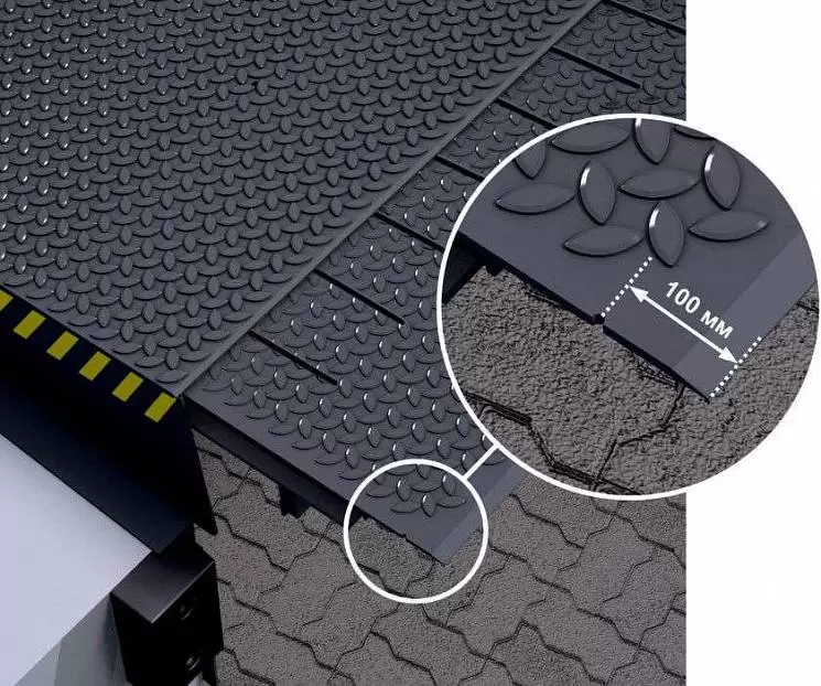 Для безопасного движения по уравнительной платформе аппарель должна заходить в кузов транспортного средства на 80-100 мм и опираться на него по всей своей ширине.