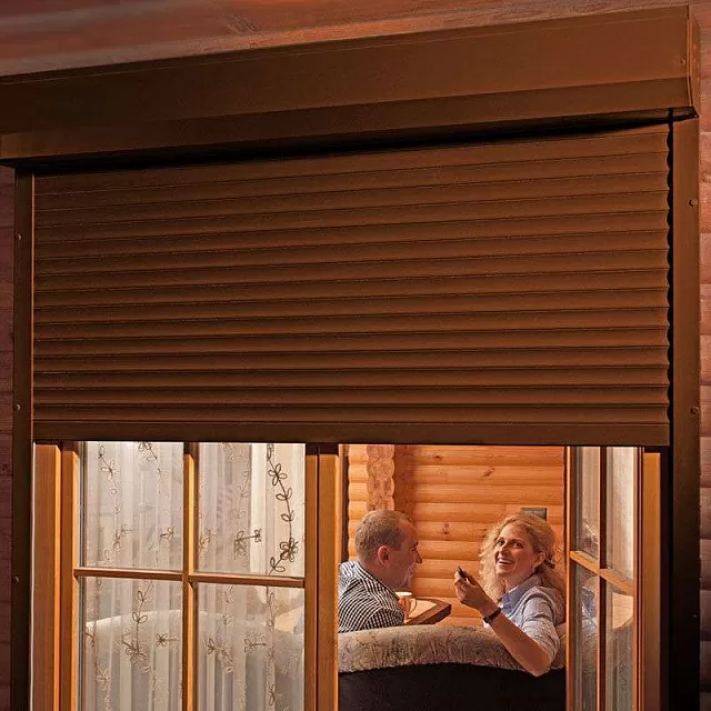 Короб роллеты устанавливается внутри проема, за счет чего на фасаде отсутствуют выступающие элементы. При таком монтаже опущенная роллета сливается с фасадом, так как находится с ним на одном уровне.