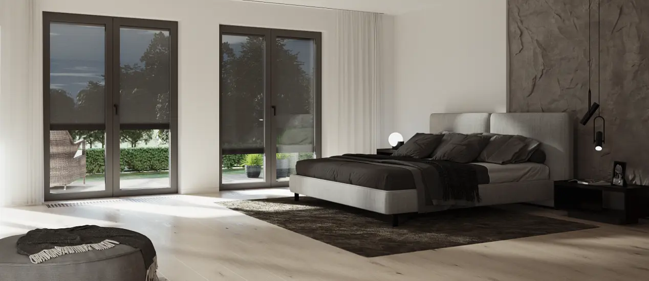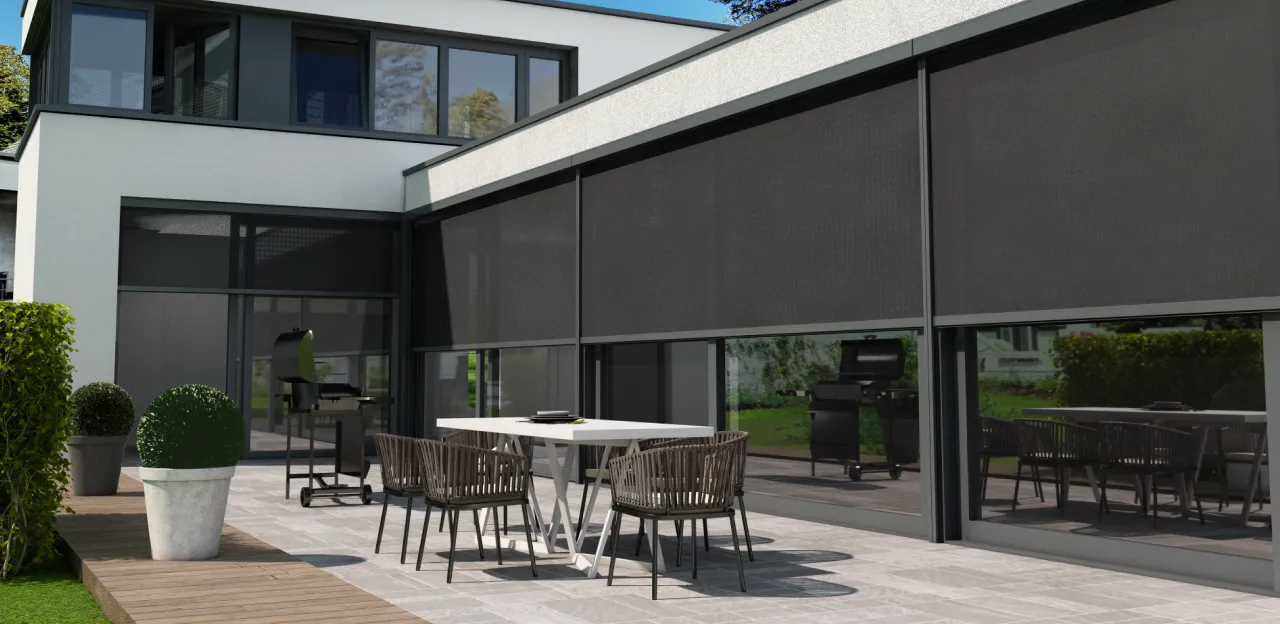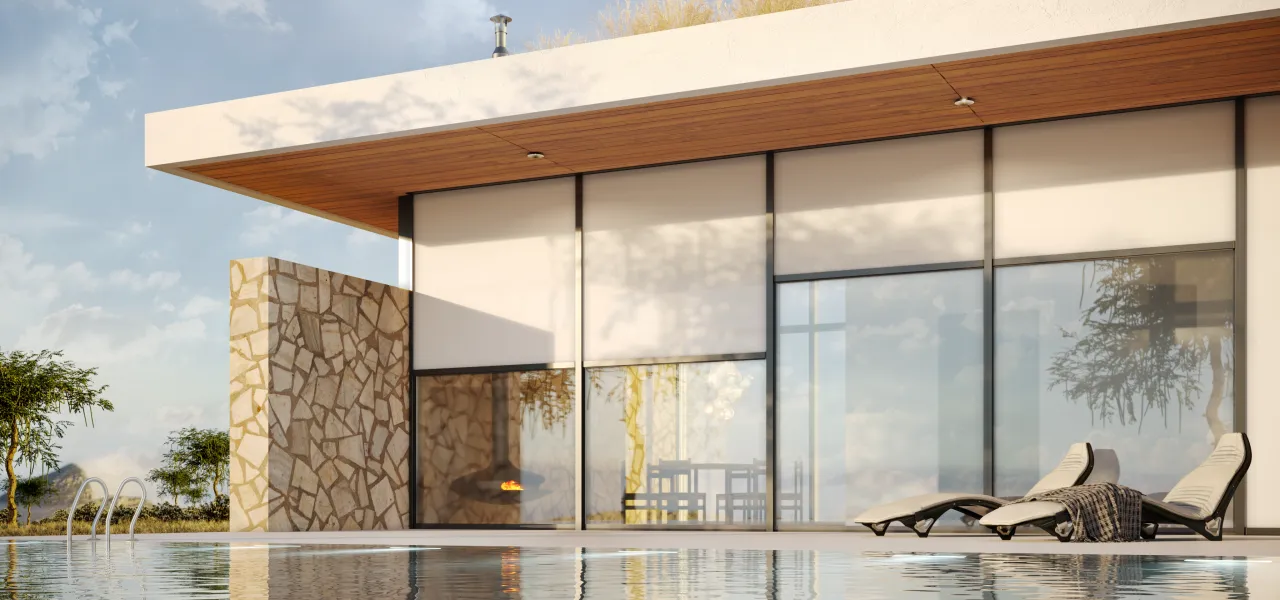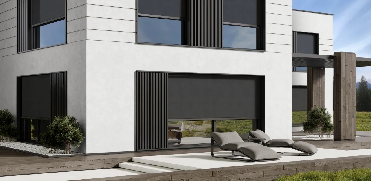 - Простота использования. Солнцезащитные системы легко поднимаются и опускаются, а также могут быть интегрированы в умный дом.