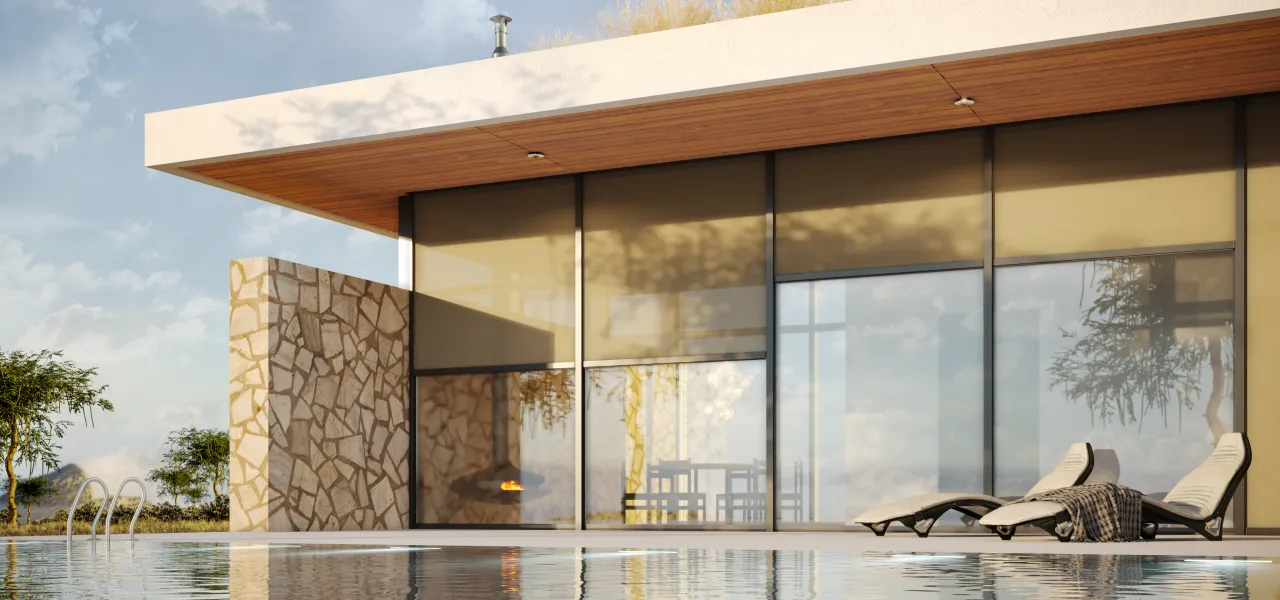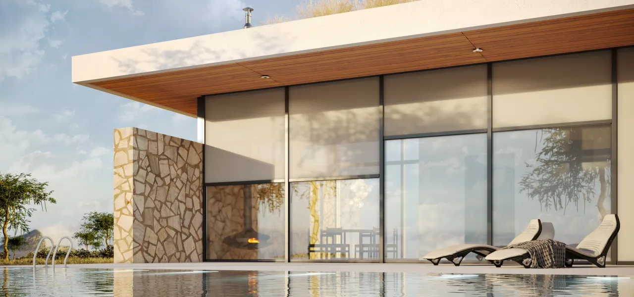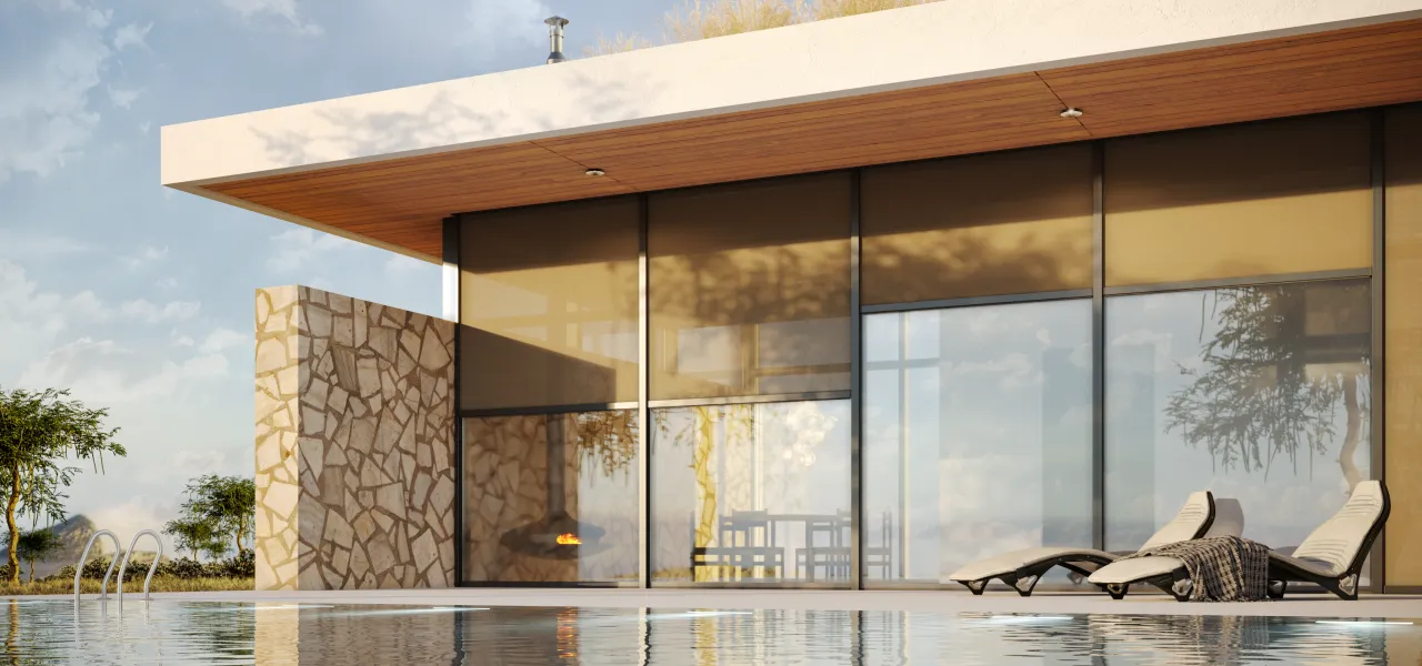 Главная функция — защита от солнца и перегрева. Также солнцезащитные системы позволяют регулировать доступ дневного света в дом. А еще они защищают от бликов на зеркальных поверхностях и обеспечивают приватность жильцов.
