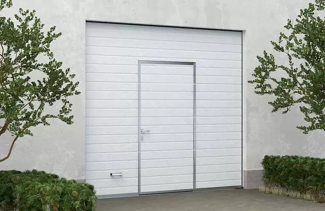 для отдельного входа-выхода. Дверь гармонично сочетается с гаражными воротами, придавая фасаду дома завершенный вид