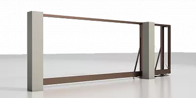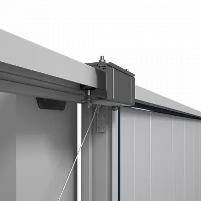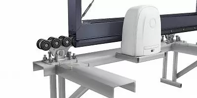 Совмещение направляющей шины с рамой в единый элемент увеличивает жёсткость конструкции и препятствует образованию перекосов. В направляющей шине предусмотрен «козырек» для фиксации зубчатой рейки и установки автоматики.