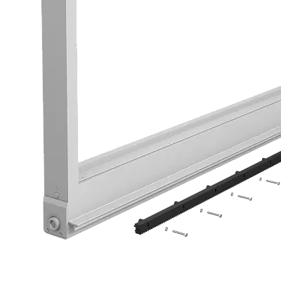 Совмещение направляющей шины с рамой в единый элемент увеличивает жёсткость конструкции и препятствует образованию перекосов. В направляющей шине предусмотрен «козырек» для фиксации зубчатой рейки и установки автоматики.