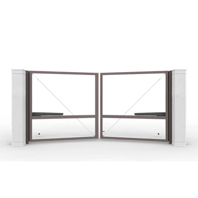 Серо-коричневые автоматические распашные ворота Prestige без заполнения 4 на 2 метра с приводом AM-3000KIT